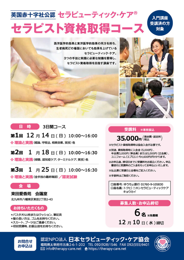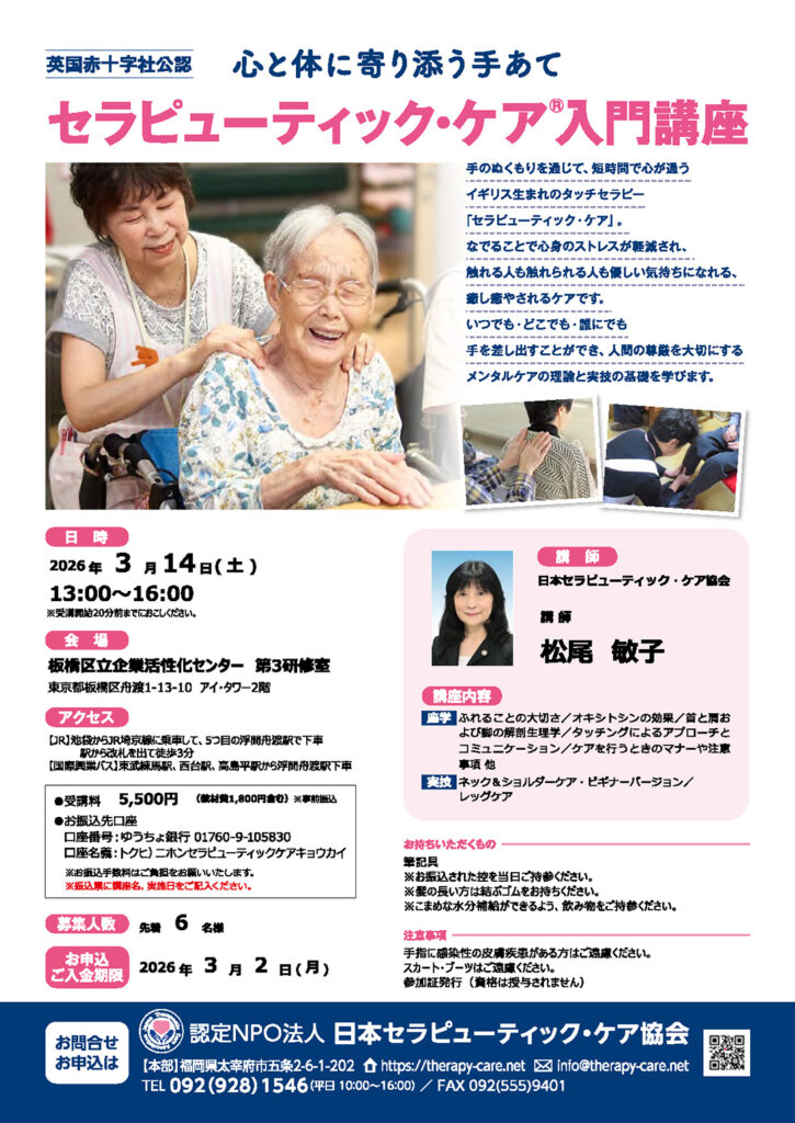 このたび当協会では、2025年度フィランソロピーバンク能登半島被災地支援事業の一つとして、金沢市内にて、ミニ講習会と、セラピューティック・ケアを受けていただける体験会を企画しました。